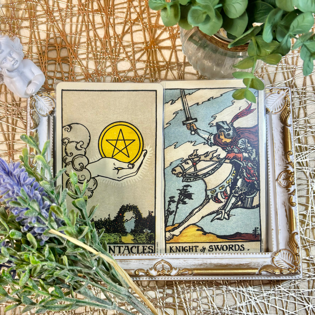 タロットカードで占ったところ、出たカードは『ペンタクルのエース』と『ソードのナイト』。